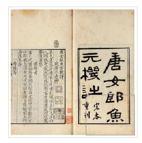 北圖所存宋本《唐女郎魚玄機(jī)詩》,乃宋陳起陳解元書籍鋪所刻,卷尾鐫有“臨安府棚北睦親坊南陳宅書籍鋪印”。此本,明代曾先后為朱承爵、項(xiàng)元汴等藏書家收藏。至1803年(清嘉慶八年),又為大藏書家黃丕烈所得。1916年(民國(guó)五年),又落入袁克文之手。其后散出,為北圖收藏,終成國(guó)家藏書。