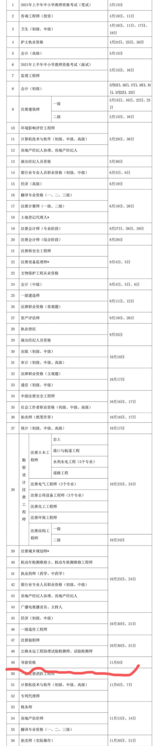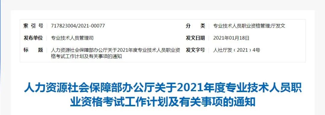 為做好專業(yè)技術人員職業(yè)資格考試規(guī)劃和管理工作,便于廣大專業(yè)技術人員參加職業(yè)資格考試,經(jīng)商有關部門同意,現(xiàn)就2021年度專業(yè)技術人員職業(yè)資格考試計劃及有關事項通知如下: