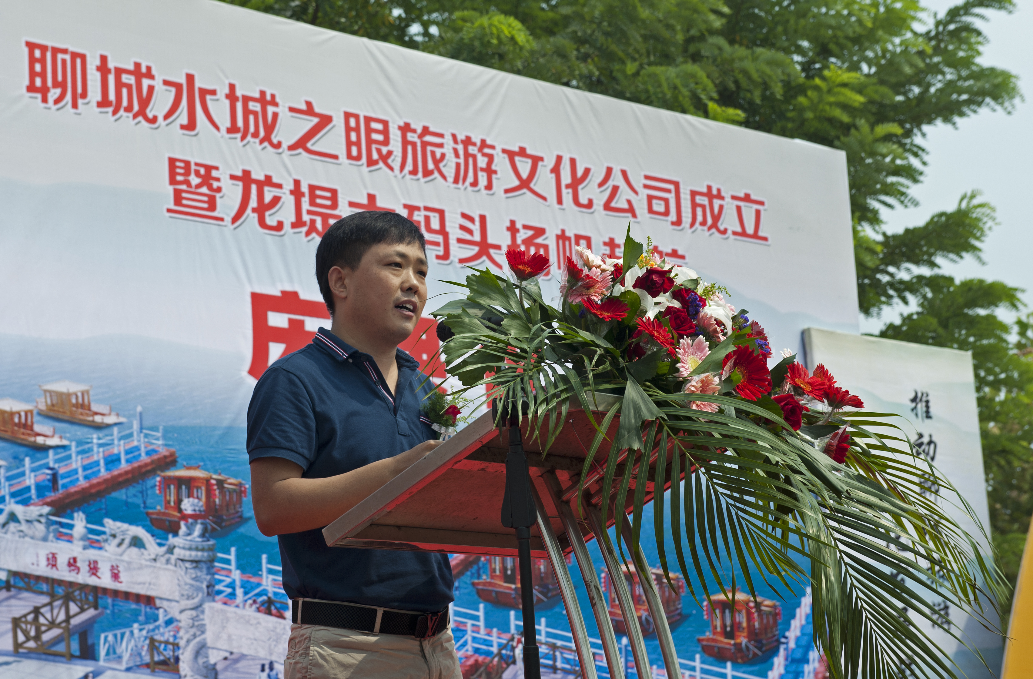 在這清風(fēng)送爽,丹桂飄香的初秋時節(jié),我們迎來了聊城水城之眼旅游文化有限公司成立暨龍堤大碼頭揚(yáng)帆起航的日子,這是聊城旅游業(yè)的一件盛事,也是我們旅游業(yè)同仁翹首企盼的一天。在此,我代表聊城全體旅游界同仁,對聊城水城之眼旅游文化有限公司成立暨龍堤大碼頭揚(yáng)帆起航表示熱烈的祝賀!對高慶余董事長帶領(lǐng)下的鑫鵬集團(tuán)表示誠摯的祝福!