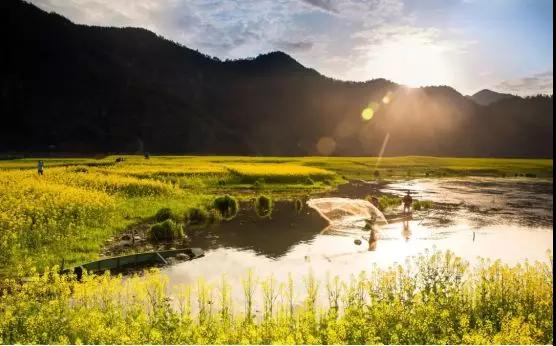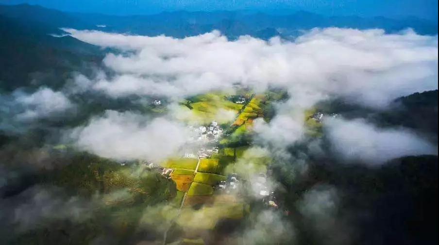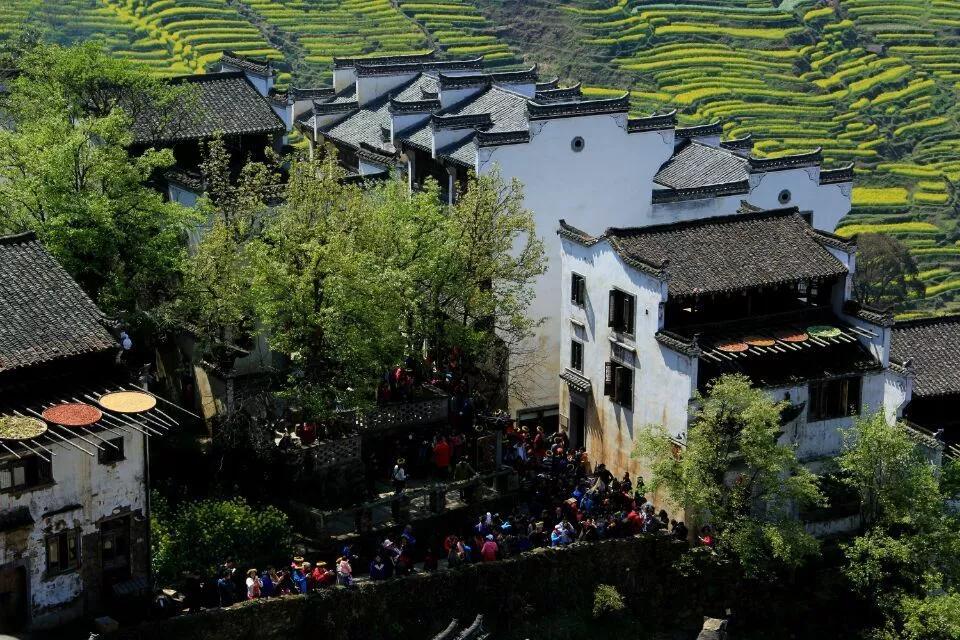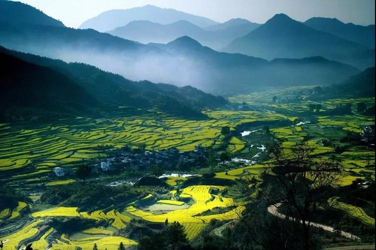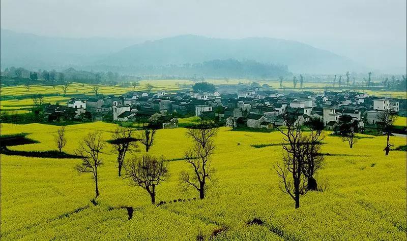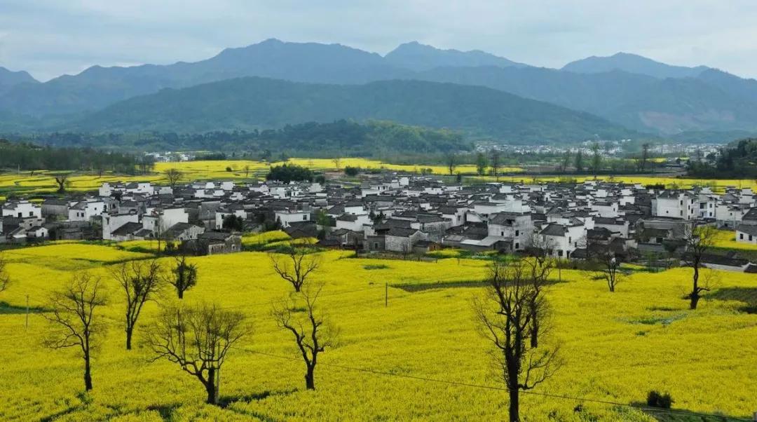 整個(gè)徽州便上演巨型的金黃色油菜花團(tuán)體操...