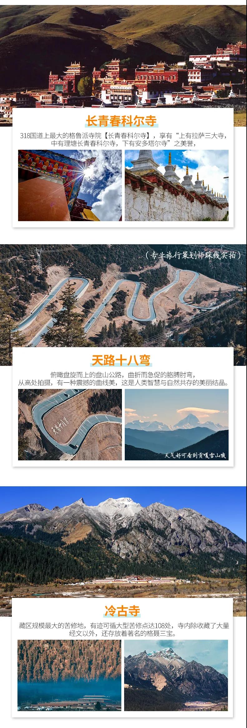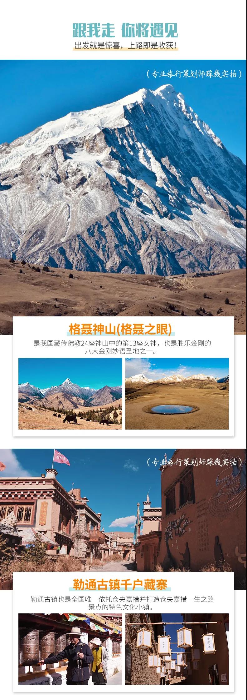 格聶神山+格聶之眼+木雅圣地滑雪+長青春科爾寺+勒通古鎮(zhèn)千戶苗寨+下則通村+冷古寺+海螺溝+理塘