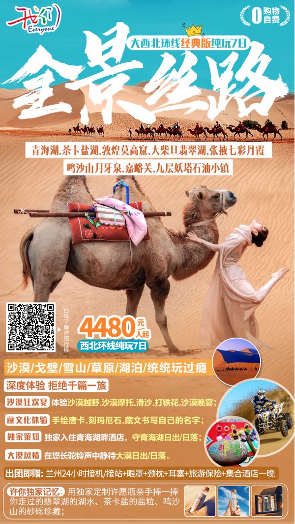 丹霞地質(zhì)公園+嘉峪關(guān)+敦煌+莫高窟+鳴沙山月牙泉+阿克塞石油小鎮(zhèn)+大柴旦翡翠湖+柴達(dá)木盆地+茶卡鹽湖+青海湖二郎劍景區(qū)+塔爾寺