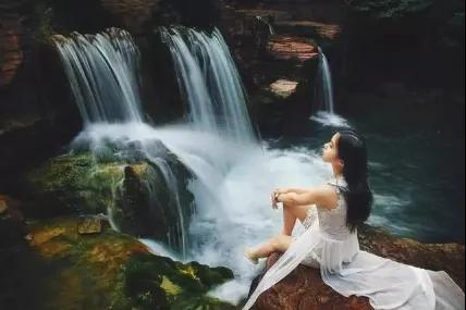 高顏值漢服達(dá)人與云臺山水相映襯