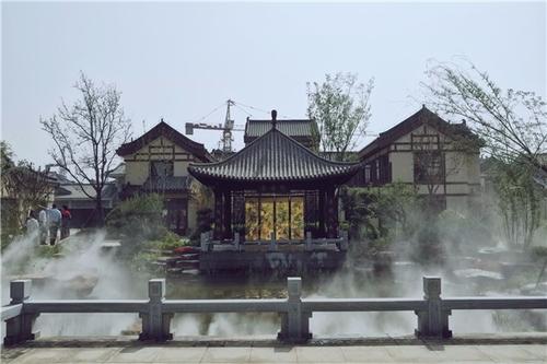 云臺古鎮(zhèn)景觀的打造以“鄉(xiāng)愁”為主題,最大限度的展現(xiàn)詩酒田園自然之美,將“竹、林、花、菜、果、水”等果蔬、農(nóng)作物的鄉(xiāng)村元素通過藝術(shù)設(shè)計(jì)的升華,植入到古鎮(zhèn)的每個角落。在公共開放休閑區(qū)域設(shè)計(jì)散點(diǎn)式果園、花田、稻田等景觀空間,植物、石材、木、磚、陶、水車、石墨、古井、古樹、棚架等鄉(xiāng)土自然材料,通過造景手法和簡單的藝術(shù)加工處理,處處散發(fā)著濃郁的鄉(xiāng)愁氣息。