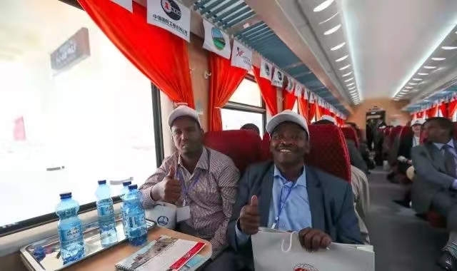 乘坐亞吉鐵路首發(fā)列車的非洲兄弟為中國點贊