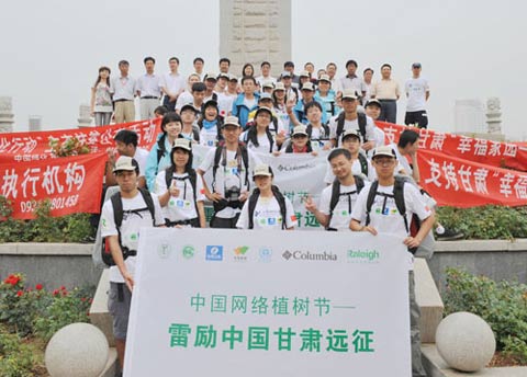 2009年7月14日上午,由聯(lián)合國環(huán)境規(guī)劃署、中國人口福利基金會、中國綠化基金會、甘肅省計劃生育協(xié)會、甘肅省治理荒漠化基金會、雷勵青年發(fā)展計劃與東南衛(wèi)視聯(lián)合主辦的2009"首屆中國網(wǎng)絡(luò)植樹節(jié)-雷勵中國甘肅遠(yuǎn)征"出征儀式在蘭州黃河母親河邊正式啟動。