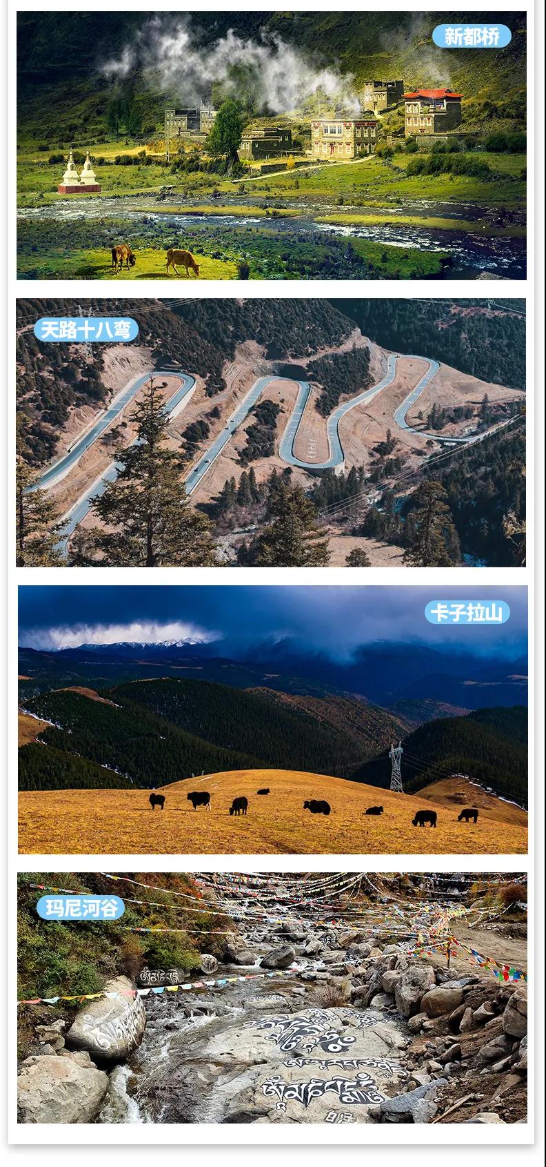 稻城亞丁+新都橋+理塘+瑪尼河谷+墨石公園+塔公草原+海螺溝冰川森林公園+天路十八彎
