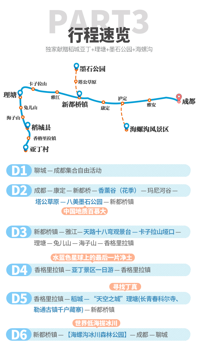 新都橋鎮(zhèn) — 海螺溝冰川森林公園 — 瀘定 — 成都 — 聊城