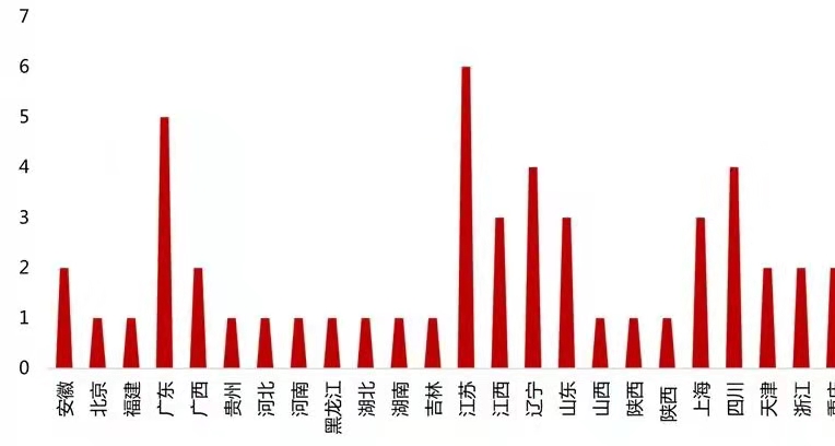 從空間分布來看,紅色文化型景區(qū)分布較為廣泛,東部、中部、西部都很豐富。由于在不同歷史發(fā)展階段,革命斗爭活動(dòng)重心地區(qū)各異,同時(shí),伴隨歷史及革命進(jìn)程所涌現(xiàn)的領(lǐng)袖和名人,其誕生地也表現(xiàn)出區(qū)域性特點(diǎn),所以,紅色文化型景區(qū)具有較明顯的地域集聚性特征。數(shù)據(jù)顯示,華東地區(qū)上榜數(shù)量最多,華北、華南、華中、西南、東北等地亦多有分布。