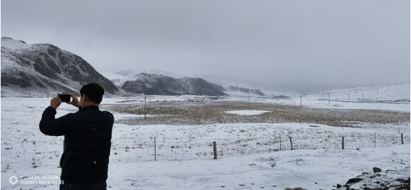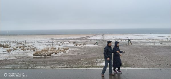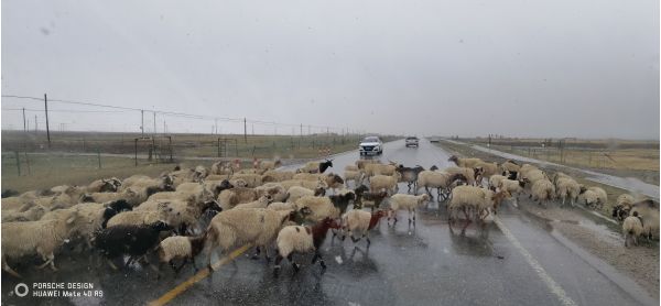 路上的雨雪下個(gè)不停。如果這樣的雨到茶卡鹽湖,別說攝影,就是參觀都不可能。人人都會(huì)落成一個(gè)落湯雞,那就沒有意義了,大家在車上商量,如果再下雨的話,就舍棄這個(gè)景點(diǎn)直接奔目的地。段會(huì)長說鹽湖的景色還有很多,我們就塌下心來往前走吧。雨一直在下大家心里還有不甘。看不到茶卡鹽湖總是一個(gè)遺憾。