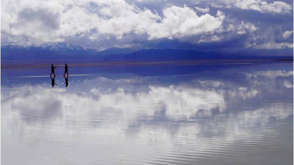 茶卡鹽湖,別稱茶卡或達(dá)布遜淖爾,是位于青海省海西蒙古族藏族自治州烏蘭縣茶卡鎮(zhèn)的天然結(jié)晶鹽湖,是柴達(dá)木盆地四大鹽湖之一。"茶卡"是藏語,意即鹽池,也就是青海的鹽;"達(dá)布遜淖爾"是蒙古語,也是鹽湖之意。