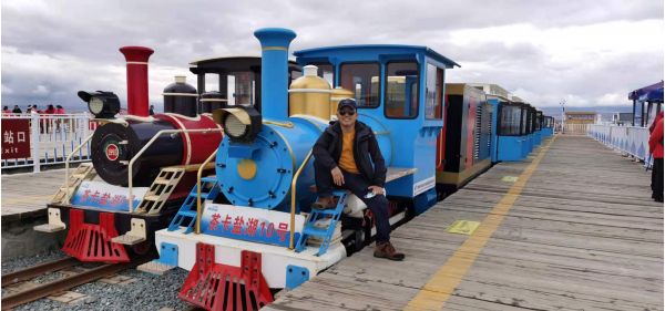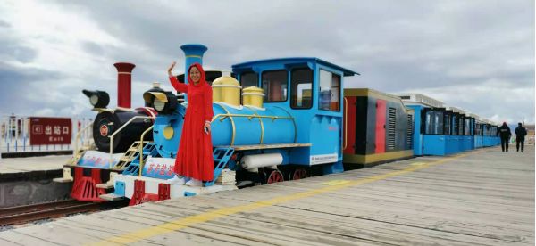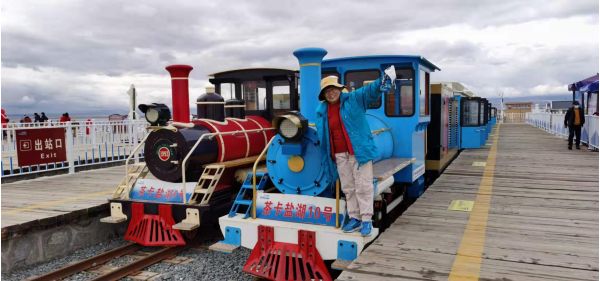 鹽湖最美景色離進(jìn)口還有4—5公里,大家都坐上了一輛小火車,鐵路是原來鹽礦采礦用的,現(xiàn)在搞起了旅游,車票每人60元,小火車大約有10節(jié)車廂吧,每個(gè)車廂有32個(gè)人,每趟就是19000元,搞旅游可能比開鹽礦更賺錢。