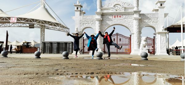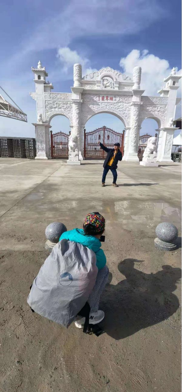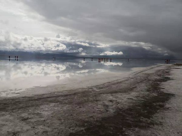 但是接近茶卡鹽湖的時(shí)候奇跡出現(xiàn)了,天放亮了,雨漸漸的小了,而我們進(jìn)入景區(qū)的時(shí)候,雨突然停了。太陽也越出了云層,向我們微笑著招手。大家歡呼了,真是上天保佑我們能看到鹽湖了。