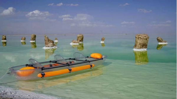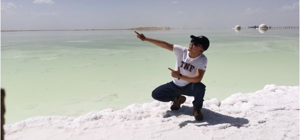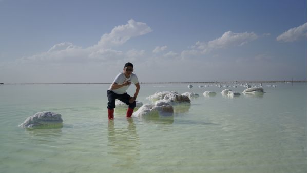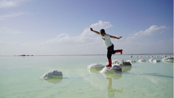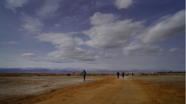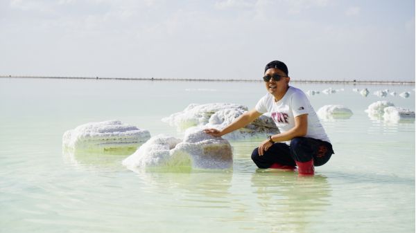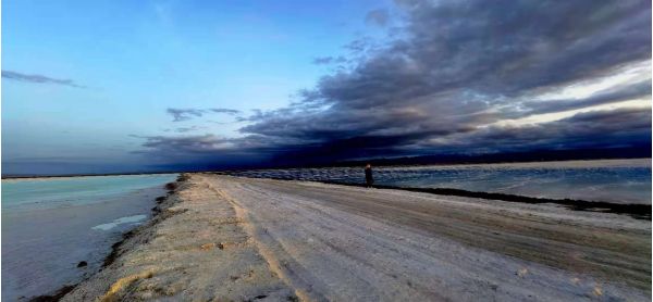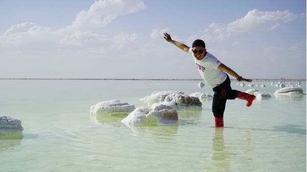 「我們」? 到達(dá)了全是鹽花的察爾汗鹽湖