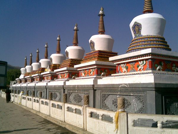 大拉浪由經(jīng)堂、華門、牌坊3座殿堂組成,為漢藏合璧式建筑,是塔爾寺總法臺(tái)的居住處,達(dá)賴、班禪曾駐蹕于此。居巴扎倉(密宗學(xué)院)系藏式平頂建筑。曼巴扎倉、丁科扎倉屬漢藏結(jié)合建筑。寶塔數(shù)十座,其中并列于寺前的8座如意寶塔,方座,瓶形塔身,尖頂,根據(jù)釋迦牟尼一生重要經(jīng)歷和傳說建成。 最后終于有了塔爾寺。