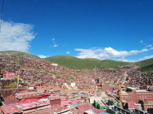雖說山坡上的紅色藏寨不如色達(dá)的密集宏偉,但來到這里還是被驚艷到了。