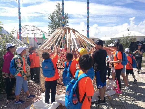 體驗(yàn)草原風(fēng)情:炫酷電瓶車、勒勒車。為了更好的體驗(yàn)蒙古族的牧民生活,分組團(tuán)隊(duì)協(xié)作搭建蒙古包,輔導(dǎo)老師作為評委,由當(dāng)?shù)啬撩裼H手教學(xué)。