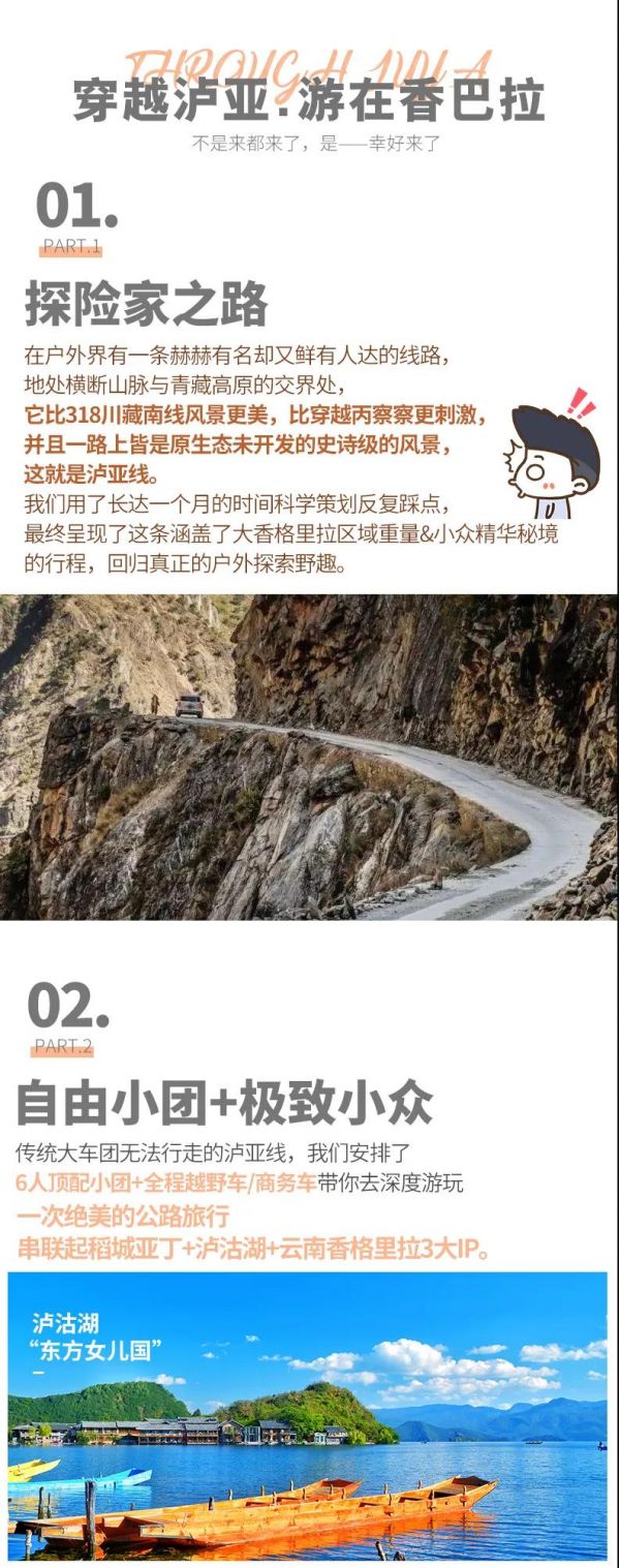 私人訂制:我們業(yè)務(wù)范圍囊括了全國(guó)各大城市,川西、西北、東北,在路上永遠(yuǎn)有我們的身影。我們將為每一個(gè)有定制需求的你策劃出獨(dú)屬于自己的完美旅行。