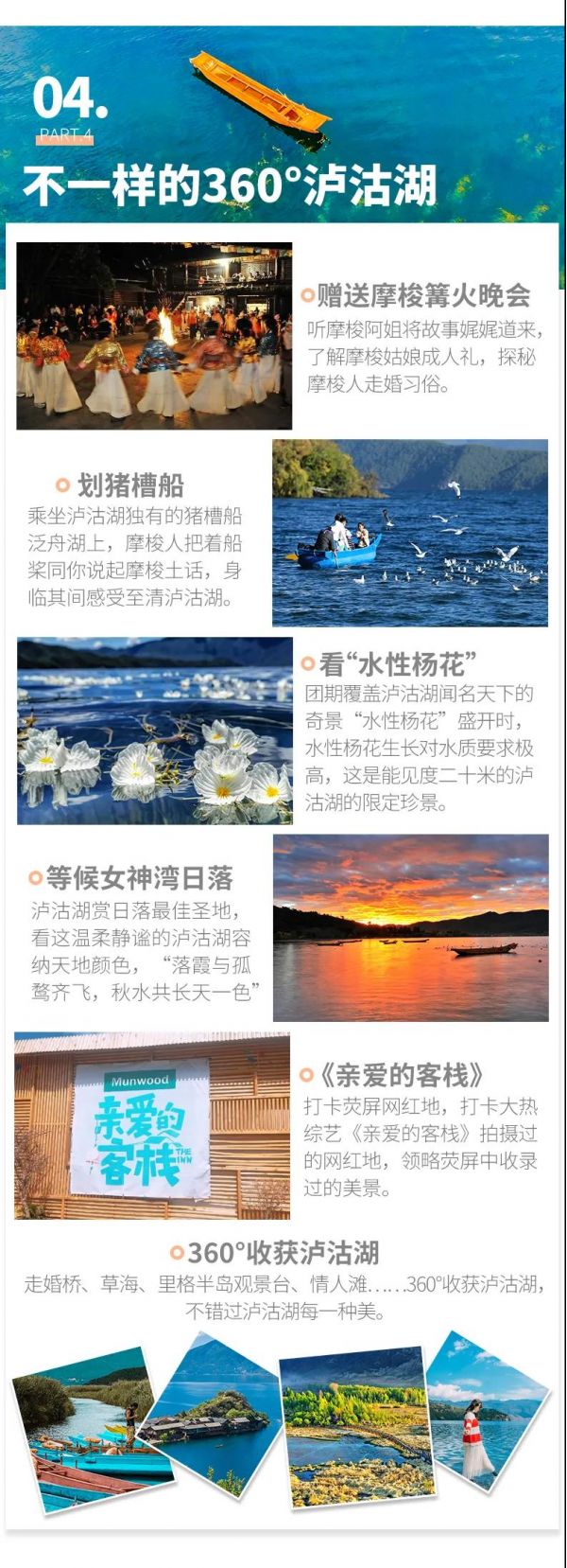 乘著豬槽船360°環(huán)游瀘沽湖,然后我們?nèi)サ健队H愛(ài)的客棧》的取景地,去走大熱綜藝走過(guò)的路,領(lǐng)略熒屏中收錄過(guò)的美景。