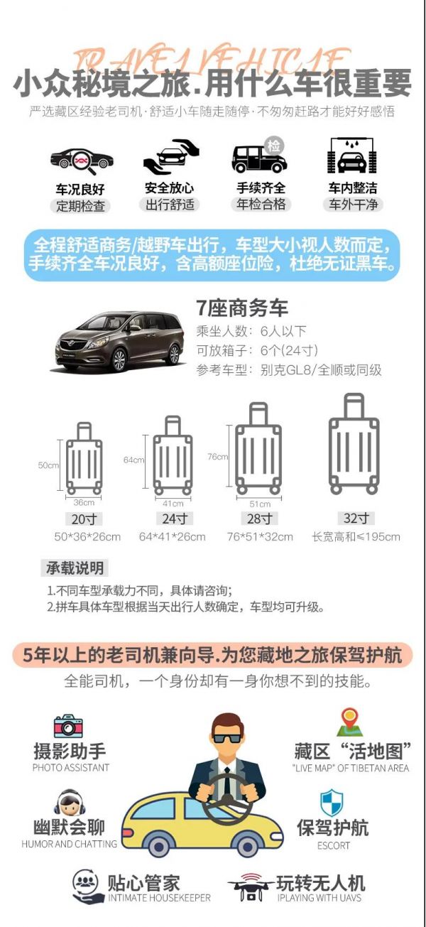 2、交通 :2-6人VIP私享小團(tuán),全程舒適越野車/商務(wù)車出行,車型大小根據(jù)實(shí)際人數(shù)安排,保證一人一正座位,且由駕駛經(jīng)驗(yàn)豐富的司機(jī)為您的出行保駕護(hù)航,報(bào)價(jià)包含車費(fèi)、油費(fèi)、停車費(fèi)、維修費(fèi)及司機(jī)勞務(wù)費(fèi)。