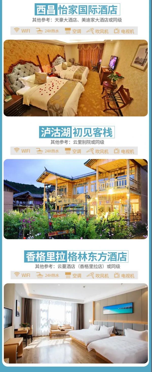 3、住宿 :含全程7晚酒店(含2晚瀘沽湖湖畔風(fēng)情客棧)。