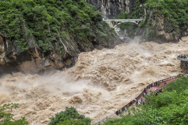 金沙江經(jīng)長(zhǎng)江第一灣之后忽然掉頭北上,從哈巴雪山和玉龍雪山之間的夾縫中硬擠過(guò)去,原本平靜祥和的江水頓時(shí)變得怒不可遏,形成了世界上最壯觀的大峽谷,而峽谷中最窄的地方就是我們今早的目的地——聞名天下的【虎跳峽】 。我們的團(tuán)期覆蓋虎跳峽最壯美的汛期,震撼的視覺(jué)沖擊能瞬時(shí)將你驚得無(wú)言,狂怒的江水拍打著崢嶸亂石,激起沖天水柱和浪花, 浪與岸、浪與岸之間碰撞發(fā)出雷霆般的轟鳴,空氣中也滿帶著泥沙味道。在大自然的鬼斧神工面前,人是如此渺小和微不足道。