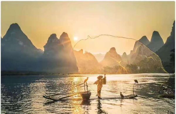 1.拱橋、老翁、魚鷹:美麗的桂林山水配合環(huán)境搭配經典的畫面場景,記錄這動人的山水之大美;