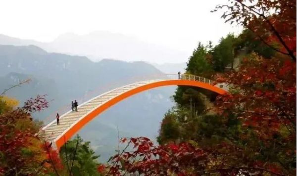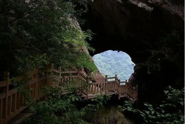 發(fā)源于老君山的黃巖河流經(jīng)此地,經(jīng)過億萬年的流動、溶蝕,形成一巖溶性天生穿洞,河水穿洞下瀉,呈現(xiàn)出‘天橋飛渡’。在這里有風(fēng)情萬種的飛瀑,鬼斧神工的天然石橋,美麗的蘭花山,險峻扼要的石壁棧道,組成了一幅絢麗多彩的山水畫卷。