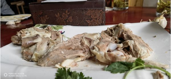 午餐吃的羊肉和面皮,羊肉鮮嫩而不膻,配合辣椒蘸料和蒜瓣,真是一道人間美味;面皮就更有講究了,據(jù)說武威面皮子在本類食品中的制作方法、口感全國獨一家,是因制作時要加蓬灰。蓬灰這種東西,其主要成分是碳酸鉀。據(jù)現(xiàn)有資料,面食中加蓬灰的只有蘭州牛肉面和涼州面皮子。加蓬灰,面得筋而精,使面筋而精的東西也多,獨有蓬灰,在蘭州牛肉面和涼州面皮子中無其它物可替代。雖說現(xiàn)在蓬灰有了工業(yè)生產(chǎn)品,用起來也方便,但終究不如用土法燒制的蓬灰做出來的地道。洗、蒸面皮子辛苦。洗時將面攪成糊狀,加適量蓬灰,一遍一遍澆洗,無法溜下籮兒的便是面筋。工序不復雜,但繁復,一遍又一遍。大清早起來要蒸,一扇一扇,十幾架籠架起來,火候如一,過火或火不透,都會影響面皮子的成分和質(zhì)量。面皮子一出籠,倒扣在案板和其它有案面的東西上,抹上熟清油,不起眼的面皮子便亮旺旺地呈現(xiàn)在人們面前。好的面皮子吃起來確實筋道。不放任何調(diào)料,抓一塊放到嘴里咬嚼,也會食欲大增,這種吃法叫吃甜面皮。那種甜,與糖味無關。蓬灰加的多少、蓬灰材質(zhì)的好壞、洗面皮子的人的手感、面的質(zhì)量,都是好的面皮子受人稱道的條件。蓬灰加得多了,面皮子的味會苦,吃一口面皮,羊肉味道仿佛蘊含在面皮中,在口腔中釋放,面皮軟糯,味道醇厚,湯汁濃郁,來武威不吃一碗面皮,實屬可惜。