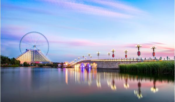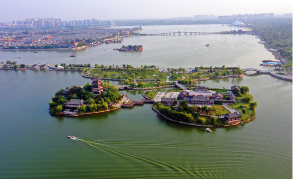 東昌湖始建于宋熙寧三年(公元1070年),在原護(hù)城河的基礎(chǔ)上經(jīng)歷代開挖而成,現(xiàn)有水域4.2平方公里,為中華人民共和國(guó)江北地區(qū)罕見的大型城內(nèi)湖泊。東昌湖引黃河水為源,常年水深3-5米,湖水清澈,無(wú)任何工業(yè)污染;景色宜人,令游客流連忘返。東昌湖中心是已有千年歷史的1平方公里的正方形聊城古城。古城風(fēng)貌保存完好,以古城正中的光岳樓為中心,向四面輻射,形成東西南北四條古城區(qū)干道,其它大街小巷,也都是經(jīng)緯分明,垂直交叉,形成棋盤方格網(wǎng)狀骨架。古城區(qū)民居,至今保留著白墻、灰瓦、城屋頂?shù)膫鹘y(tǒng)建筑風(fēng)格。古老的京杭運(yùn)河兩岸,街巷布列,各種店鋪民居,隨坡就勢(shì),依河而建。條石鋪砌的大小碼頭,株株蒼勁的古槐,以及宋代隆興寺鐵塔,國(guó)家重點(diǎn)文物、清代建筑山陜會(huì)館,仍會(huì)使人們體味到昔日運(yùn)河漕運(yùn)鼎盛時(shí)期古聊城的繁榮和輝煌。通過(guò)有效地開發(fā)和利用這些得天獨(dú)厚的旅游資源,形成了東昌湖風(fēng)景名勝區(qū)的重要內(nèi)容——湖濱風(fēng)景區(qū)、古城文化區(qū)和運(yùn)河風(fēng)情區(qū)。