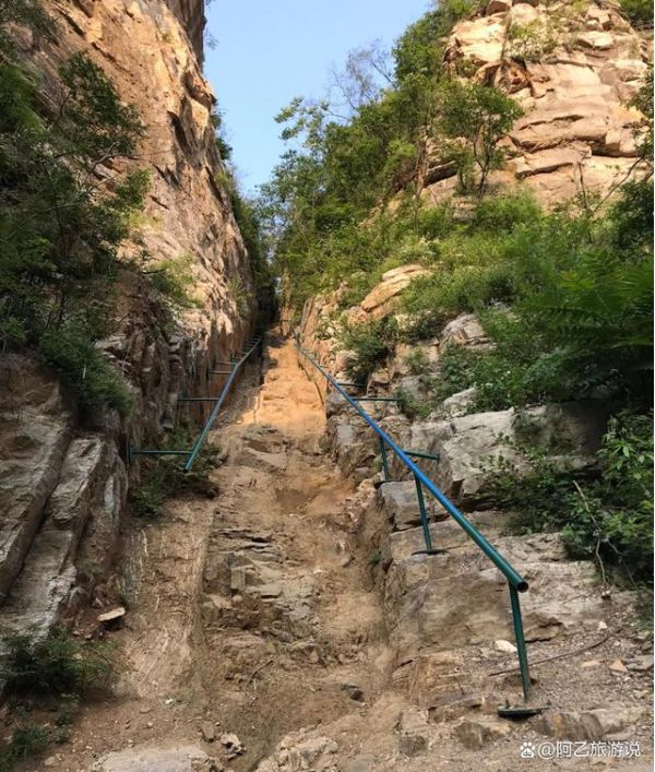 這段山路崎嶇難行,其間一處小斷崖,得依靠木梯才能前進(jìn),“一線天”的稱呼名副其實。可以說,如果不是有打入巖石上的螺栓帶,多數(shù)人可能根本不敢走。