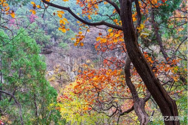壯美”青松翠柏間,黃櫨如火焰般綻放著熱情,高崖絕壁的密林間層林盡染。山色五彩斑斕,絢麗多姿,完全不遜于紅葉谷,不禁讓人感嘆大自然調(diào)色盤的神奇。