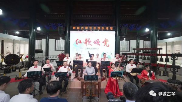 揭牌儀式后,各位領(lǐng)導(dǎo)和與會嘉賓一同觀看了由古琴學(xué)會-至和雅樂團(tuán)精心編排演繹的節(jié)目:鐘磬樂《云水禪心》,小合唱《春風(fēng)十萬里》,器樂合奏《紅歌頌黨》。