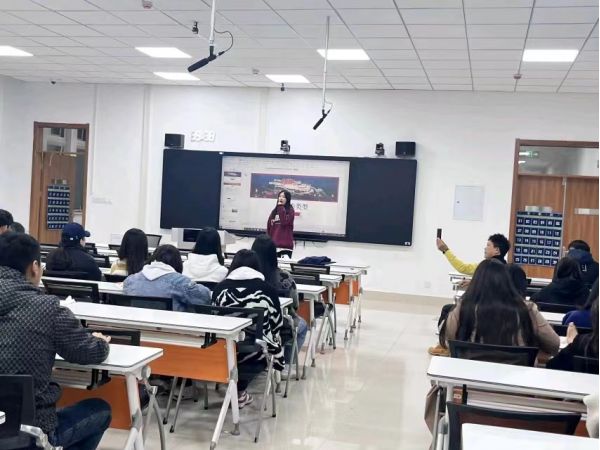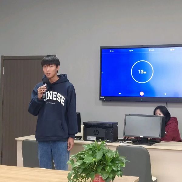 李燕老師來(lái)到實(shí)訓(xùn)室聽(tīng)panda演講。