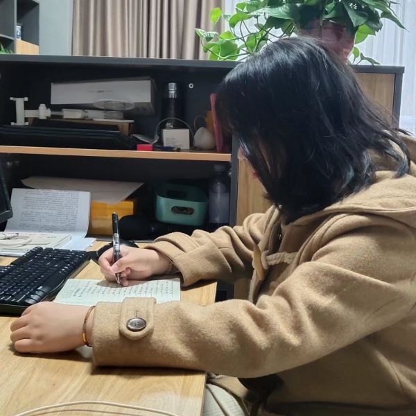 楊倚晴在完善三十個(gè)英語(yǔ)翻譯。