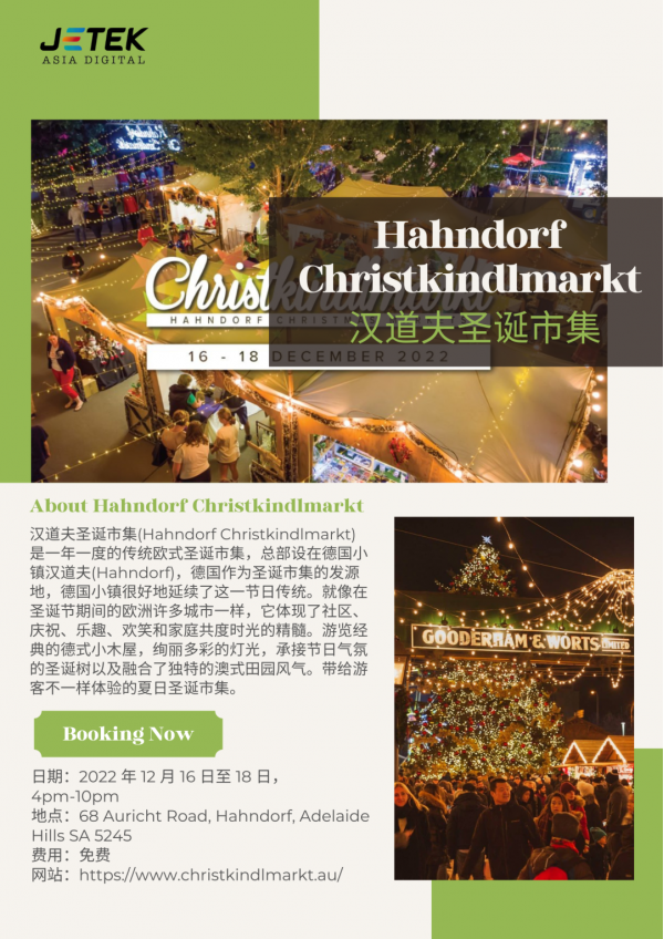 2022年阿德萊德的圣誕狂歡月即將到來(lái)!不負(fù)“節(jié)日之州”的頭銜,在2022年的最后一個(gè)月,讓我們一起為即將離去的2022年慶祝與歡呼!與家人和愛(ài)人以及朋友一起享受阿德萊德濃厚的節(jié)日氣氛。