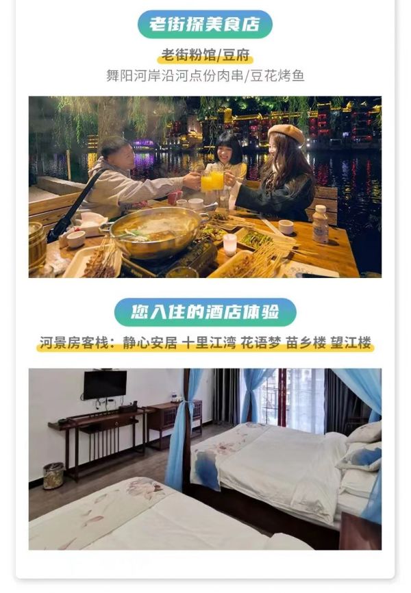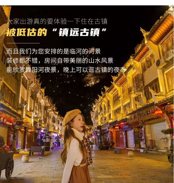 1.最A(yù)保證:保證入住鎮(zhèn)遠(yuǎn)古鎮(zhèn)景區(qū),尊享臨河河景房,不出房間即可欣賞舞陽河夜景。