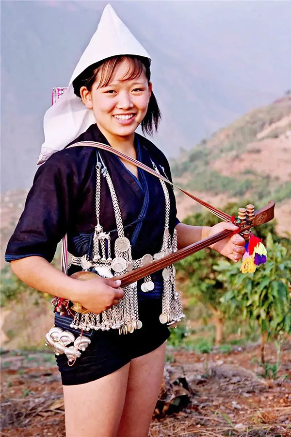 紅河縣哈尼族奕車支系獨有的“奕車服飾”至今已有千余年的歷史。“奕車服飾”特點是緊臀、超短、露臍、無褲腰。以黑白相配為主調,對比強烈、白色的帽子、銀飾,黑色的衣服、褲子,一眼望去極為醒目,充分體現了哈尼族奕車人簡潔、熱情奔放的民族個性特征。