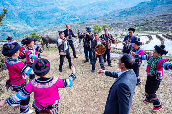 哈尼族歌舞絢爛多彩、傳播廣泛。哈尼铓鼓舞雄渾豪放,氣勢軒昂,質樸勁健,熱情灑脫,表現出了哈尼人大山一樣的性格,森林一樣的情懷;哈尼古歌以口傳心授的方式代代相傳,歌唱無處不在,且成為這個民族的生存狀態(tài)和文化傳承的方式;多聲部民歌源于哈尼族梯田文明,以歌頌勞動、祈福豐收、贊美愛情為主要內容,通過唱、跳、彈等藝術表現形式展現哈尼族的日常生活,為第一批國家級非物質文化遺產;“樂作舞”是集歌、舞、樂為一體的哈尼族古老的民族民間原生態(tài)傳統(tǒng)舞蹈。