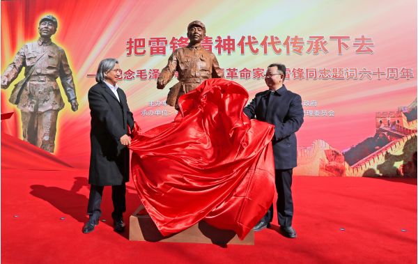 3月1日,由中國(guó)美術(shù)館、北京市東城區(qū)委、東城區(qū)人民政府共同主辦的“把雷鋒精神代代傳承下去—紀(jì)念毛澤東等老一輩革命家為雷鋒同志題詞六十周年”活動(dòng)在北京王府井步行街舉行。活動(dòng)現(xiàn)場(chǎng),全國(guó)政協(xié)常委、民盟中央副主席、中國(guó)美術(shù)館館長(zhǎng)、中國(guó)美協(xié)副主席吳為山與東城區(qū)委書(shū)記孫新軍共同為雷鋒同志銅像揭幕。