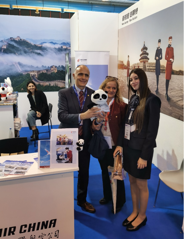 中國駐羅馬旅游辦事處攜手中國國際航空公司參加博覽會,聯(lián)合打造了“文旅+航空”綜合展臺,以航旅一體化推介形式向廣大意大利旅行商和游客發(fā)出“在春暖花開之時,暢游美麗中國”邀約。