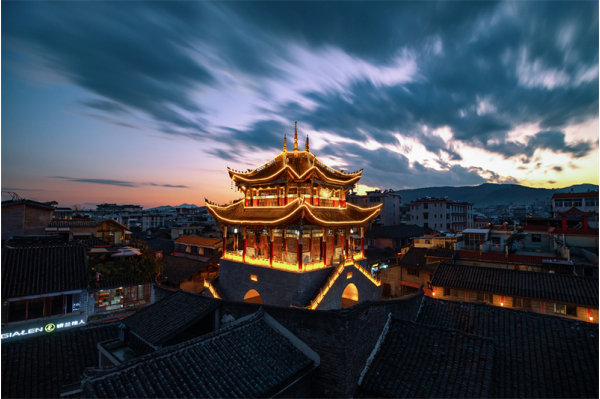 古城以鐘鼓樓為界形成“穿城三里三、圍城九里九”,以南北中軸線為主的“四街三關(guān)二十三巷”的棋盤式格局。城內(nèi)的鐘鼓樓又名凌霄樓,始建于清雍正年間,被譽為“南來建州第一樓”,其“五星抱月”式樓頂為川西南所獨有。漫步青石街上,一樓一底的青瓦栗色木板樓房琳瑯滿目。縱橫交錯的小巷內(nèi),大量明清時期修建的民宅、寺廟、會館等星羅棋布,小小會理,城中有異景,巷里藏乾坤。行走其間,在一磚一瓦上,能觸摸到會理市最古老的脈搏;在一苔一蘚間,能聞聽到會理市最久遠的傳說。