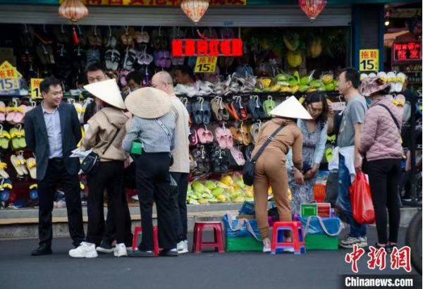 每天一早,來自越南芒街市的范氏香通過中越友誼大橋走到一河之隔的廣西防城港市東興國門景區(qū),向游客售賣她從越南帶來的小商品,她這項(xiàng)已堅(jiān)持十余年的跨國小生意暫停三年后,如今得以重新開啟。