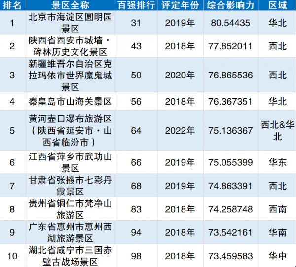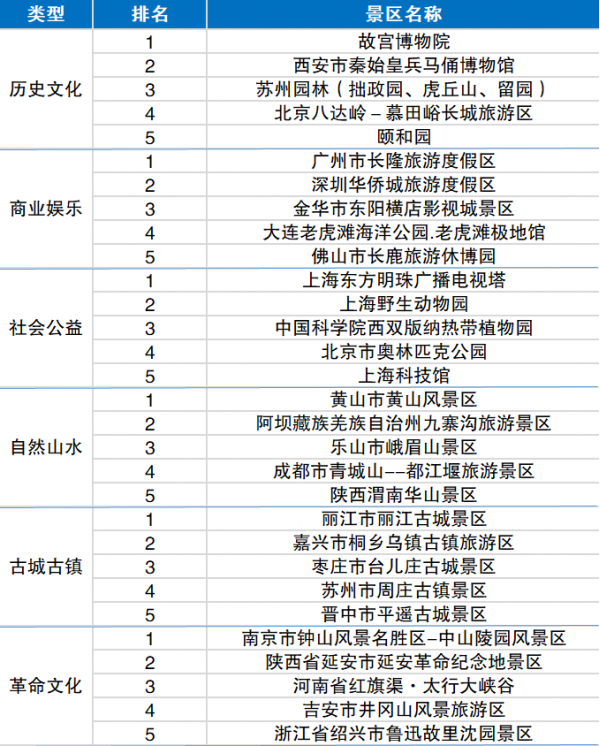 5A級(jí)景區(qū)綜合影響力TOP50