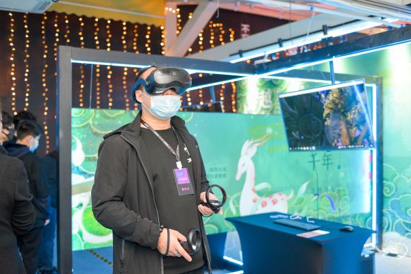 展覽現(xiàn)場(chǎng),“敦煌飛天”“二道井子”等VR項(xiàng)目吸引了不少觀眾駐足體驗(yàn)。觀眾曹女士說(shuō):“戴上VR眼鏡,伴隨著空靈的音樂(lè)和渾厚莊重的鐘聲,身邊一直有飛天舞女環(huán)繞著我,還有漫天的花瓣飄落,不自覺(jué)地想要抬手碰觸,畫(huà)面特別美,值得體驗(yàn)。”