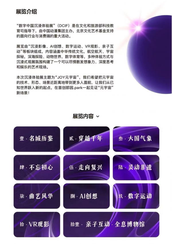 據(jù)了解,此次展覽由沉浸影像、AI創(chuàng)想、VR觀影、數(shù)字運(yùn)動(dòng)、親子互動(dòng)等板塊組成,涵蓋中國(guó)傳統(tǒng)文化、航空航天、宇宙探秘、深海探險(xiǎn)、動(dòng)物世界、數(shù)字體育等內(nèi)容,讓觀眾在娛樂(lè)互動(dòng)中沉浸式感受博大精深的中國(guó)傳統(tǒng)文化,體驗(yàn)足球、射箭等運(yùn)動(dòng)樂(lè)趣,重溫南昌起義、遵義會(huì)議等歷史場(chǎng)景,盡享“科技+”魅力。