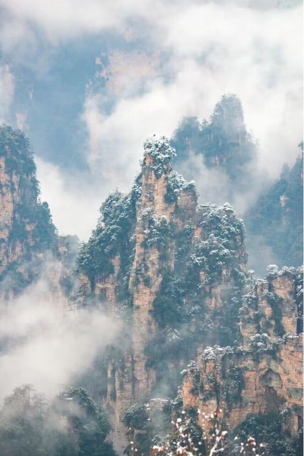 日落,艷陽(yáng),云海,飛雪。’你能想象的到的任何的天氣都影響不到張家界的美。