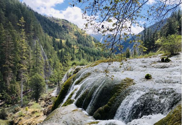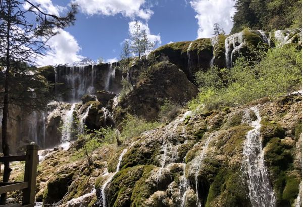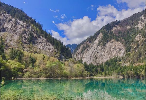 黃山歸來不看云,九寨歸來不看水,九寨山水,天然原始,四季景色變幻無窮,尤其是秋季,沿湖連綿數(shù)十里彩林美不勝收。九寨溝的精靈是水,湖、泉、河、灘連綴一體,千顏萬色,高低錯落的群瀑高唱低吟,大大小小的群海碧藍(lán)澄澈,水中倒映紅葉、綠樹、雪峰、藍(lán)天,變幻無窮;水在樹間流,樹在水中長,花樹開在水中央