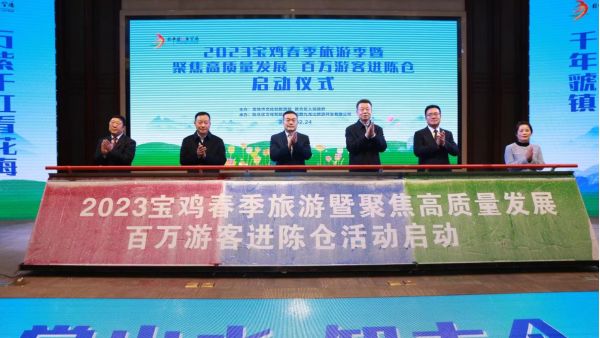 來自甘肅、青海、寧夏、四川、重慶、山西、河南等省市400余家旅行社及旅行商代表,寶雞各旅游區(qū)管委會(huì)、縣區(qū)文旅局、4A級(jí)以上旅游景區(qū)及各旅游協(xié)會(huì)負(fù)責(zé)人,中省市新聞媒體記者共計(jì)600余人參會(huì)。會(huì)上,中共陳倉(cāng)區(qū)委書記馬霄致辭,市文化和旅游局局長(zhǎng)周保君發(fā)布了2023寶雞春季文化旅游季、“引客入寶”、旅游惠民、旅游線路等相關(guān)政策信息,陳倉(cāng)區(qū)人民政府副區(qū)長(zhǎng)杜石磊介紹“聚焦高質(zhì)量發(fā)展·百萬游客進(jìn)陳倉(cāng)”活動(dòng)情況,寶雞旅游景區(qū)與旅行社代表簽訂了旅游合作協(xié)議,領(lǐng)導(dǎo)為“百萬活動(dòng)”進(jìn)陳倉(cāng)代表授旗,與會(huì)領(lǐng)導(dǎo)共同啟動(dòng)了活動(dòng),儀式由陳倉(cāng)區(qū)人民政府區(qū)長(zhǎng)馬小鋒主持。市政協(xié)副主席張德科出席了啟動(dòng)活動(dòng),陳倉(cāng)區(qū)區(qū)委、區(qū)人大、區(qū)政府、區(qū)政協(xié)和區(qū)級(jí)相關(guān)部門主要領(lǐng)導(dǎo)參加了啟動(dòng)活動(dòng)。