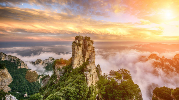 “三頂、六臺(tái)、九谷、八十一峰”,集峰林、怪石、絕壁、峽谷、森林、云海、佛光、長(zhǎng)城等景觀于一體,地貌奇特,結(jié)構(gòu)復(fù)雜,頗具觀賞游覽價(jià)值。